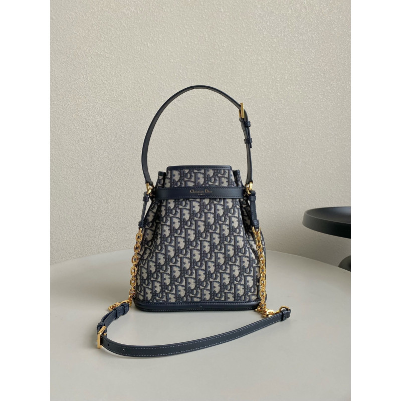 Rotate the D-shaped letter to open and close the CD buckle lock. When pulled tight, the bag is highly secure; when loosened, it gives a casual and relaxed feeling. Both long and short shoulder straps are adjustable, and the chain is detachable. It has a three-dimensional design, creating a full atmosphere, with a large capacity. Perfect for daily commutes, this bucket bag is absolutely fantastic.
