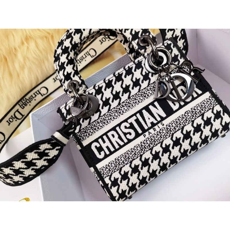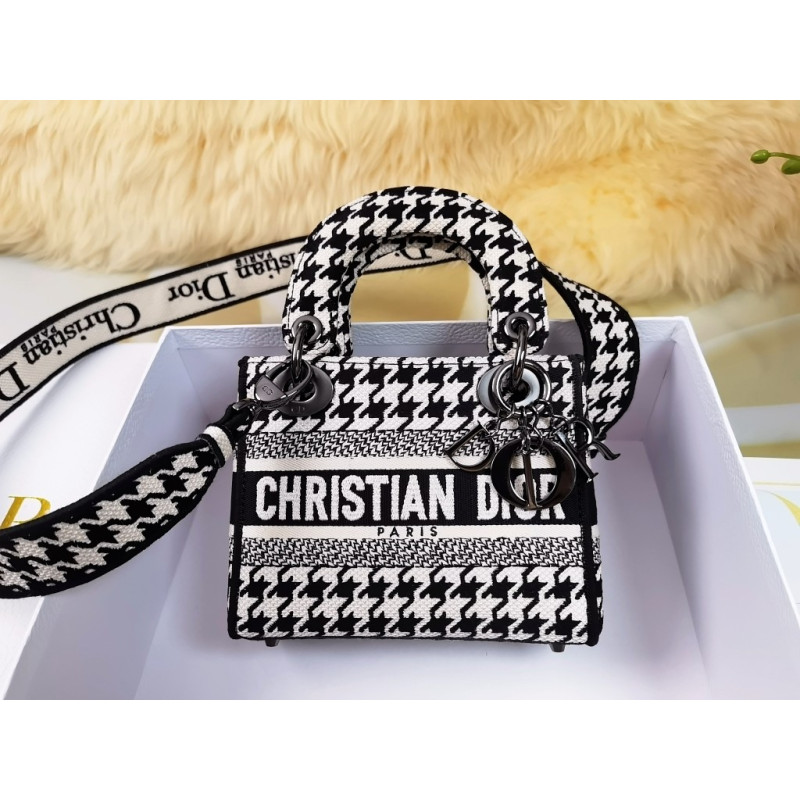 The 'CHRISTIAN DIOR PARIS' logo is embossed on the front, and it is equipped with a large double-sided detachable embroidered shoulder strap, which can be matched with different embroidered shoulder straps, and can be carried by hand or cross-body.