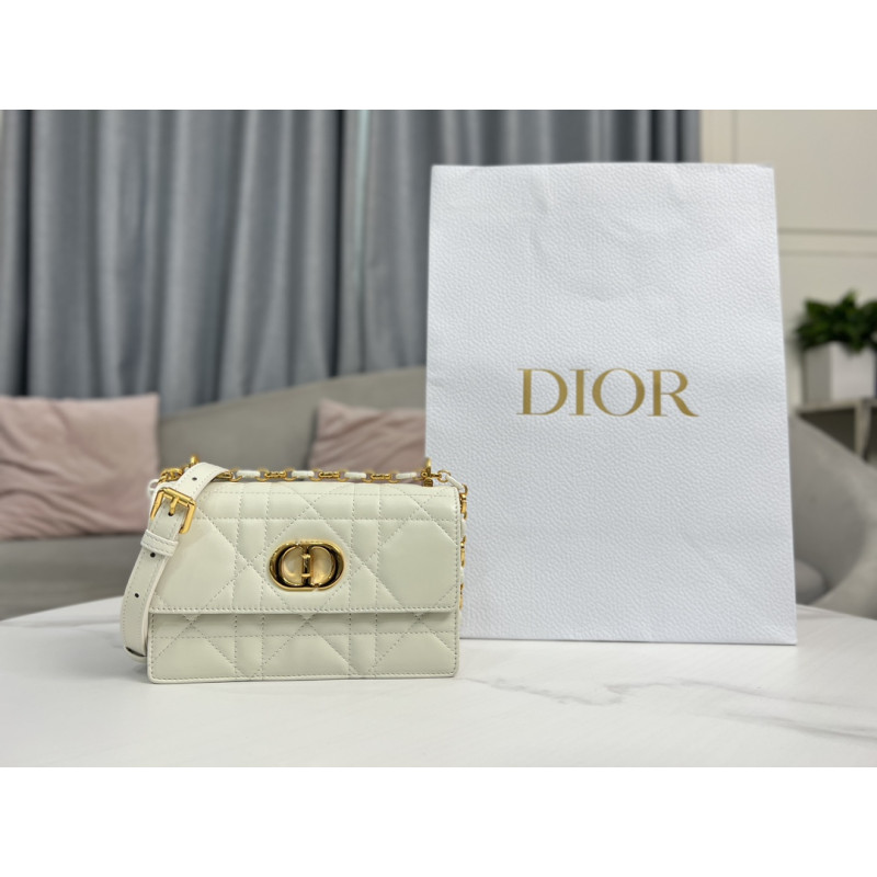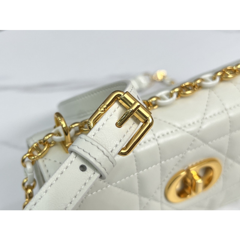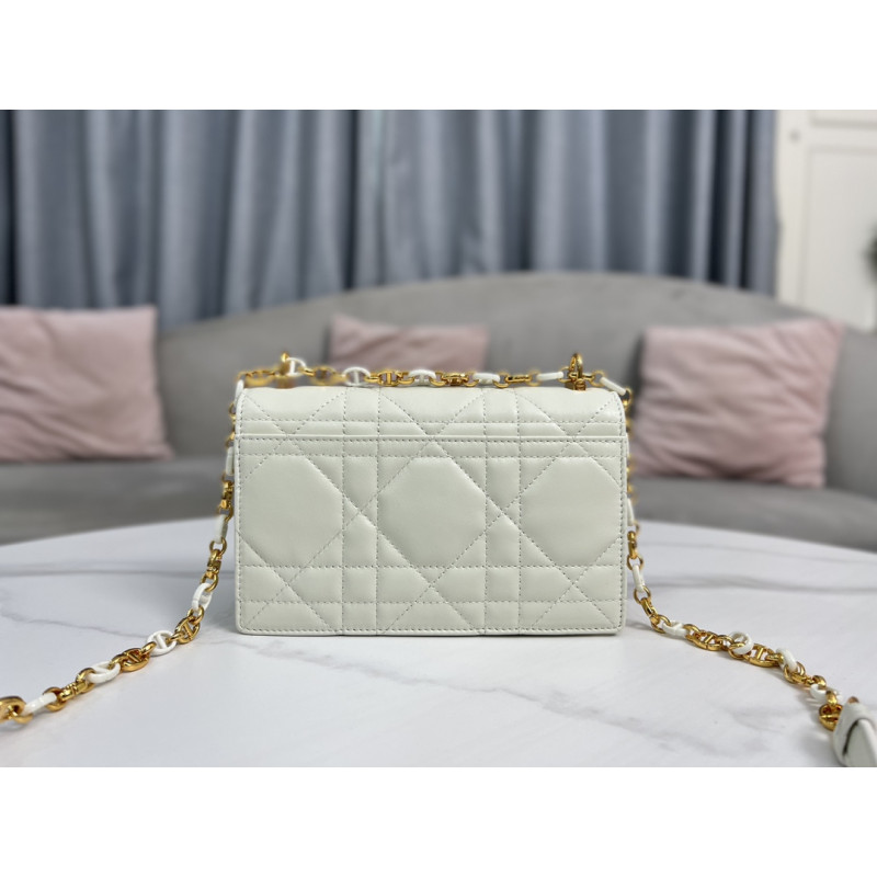 DetailMade of lambskin with unique quilted Macrocannage effect, gold-finish metal CD button closure on flap, adjustable chain shoulder strap between gold-finish metal links and tonal enamel links to match the leather alternates with leather inserts for added comfort when carried by hand or cross-body.
