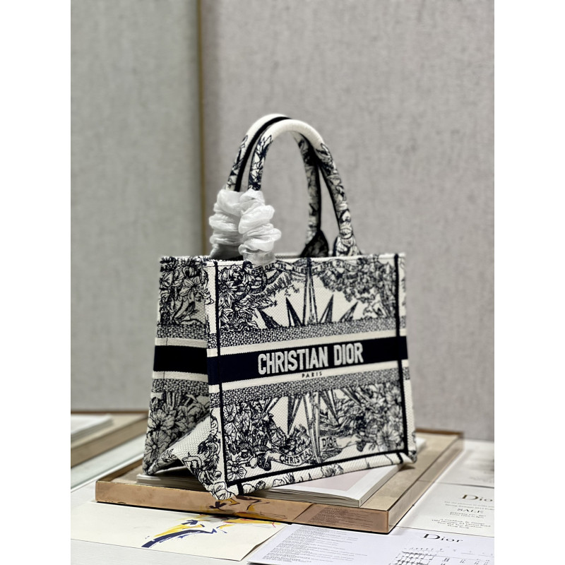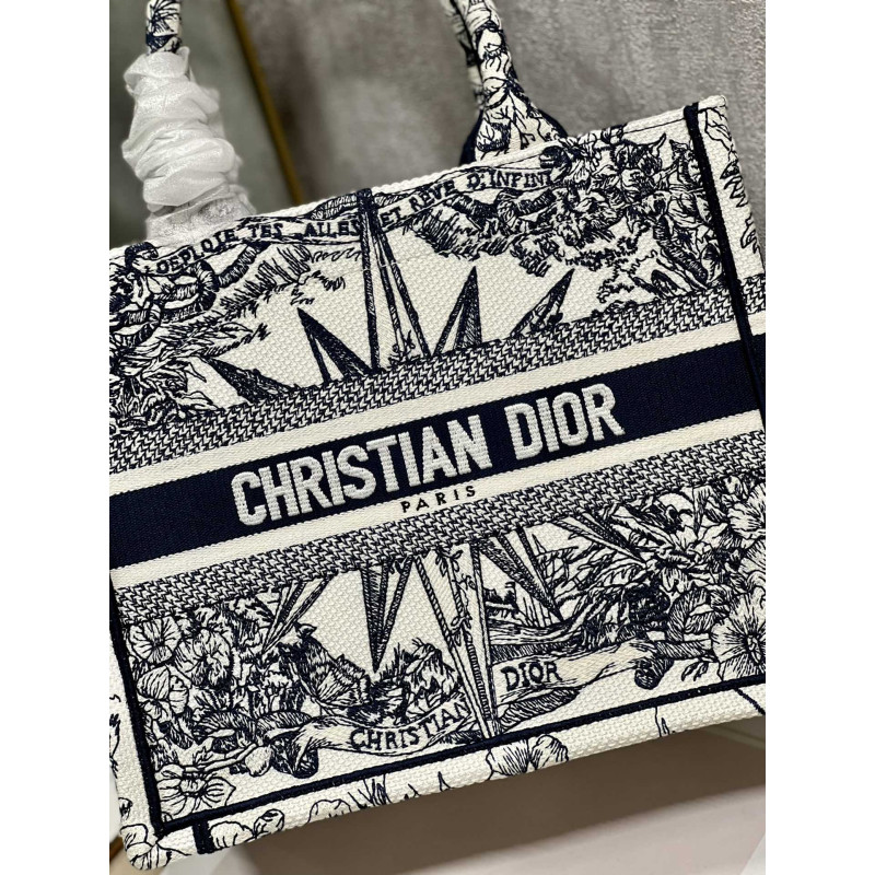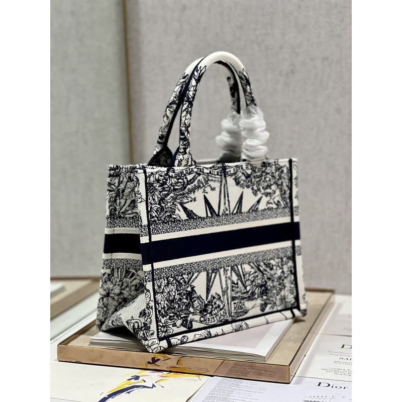 Designed to hold all your daily essentials, this style is fully embroidered with the Toile de Jouy motif and features the Christian Dior Paris signature on the front. The handbag embodies the brand's signature craftsmanship.