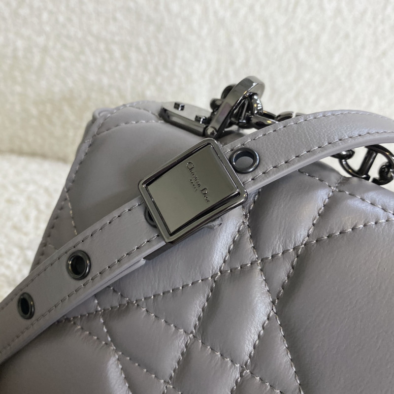 DetailCrafted from calfskin with Cannage stitching. Antique gold-plated metal 'CD' button on the flap, adjustable and detachable chain shoulder strap with 'CD' logo links, can be carried by hand, shoulder or crossbody, and can be matched with different embroidered shoulder straps.