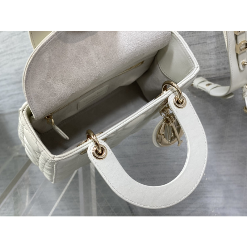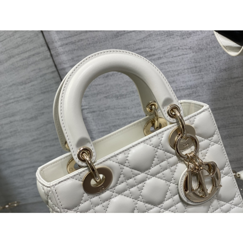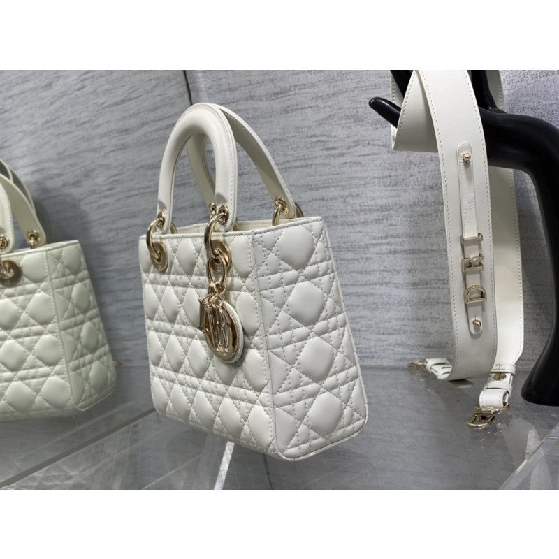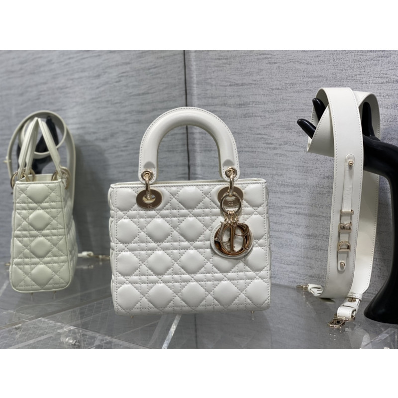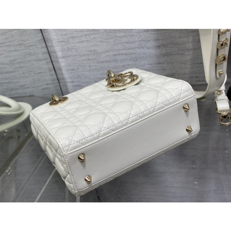 Crafted from lambskin, it features Cannage stitching for an instantly recognizable quilted texture. Can be carried by hand or crossbody, with internal zip pocket and adjustable shoulder strap, which can be matched with different embroidered shoulder straps, making it an ideal companion for evening wear.