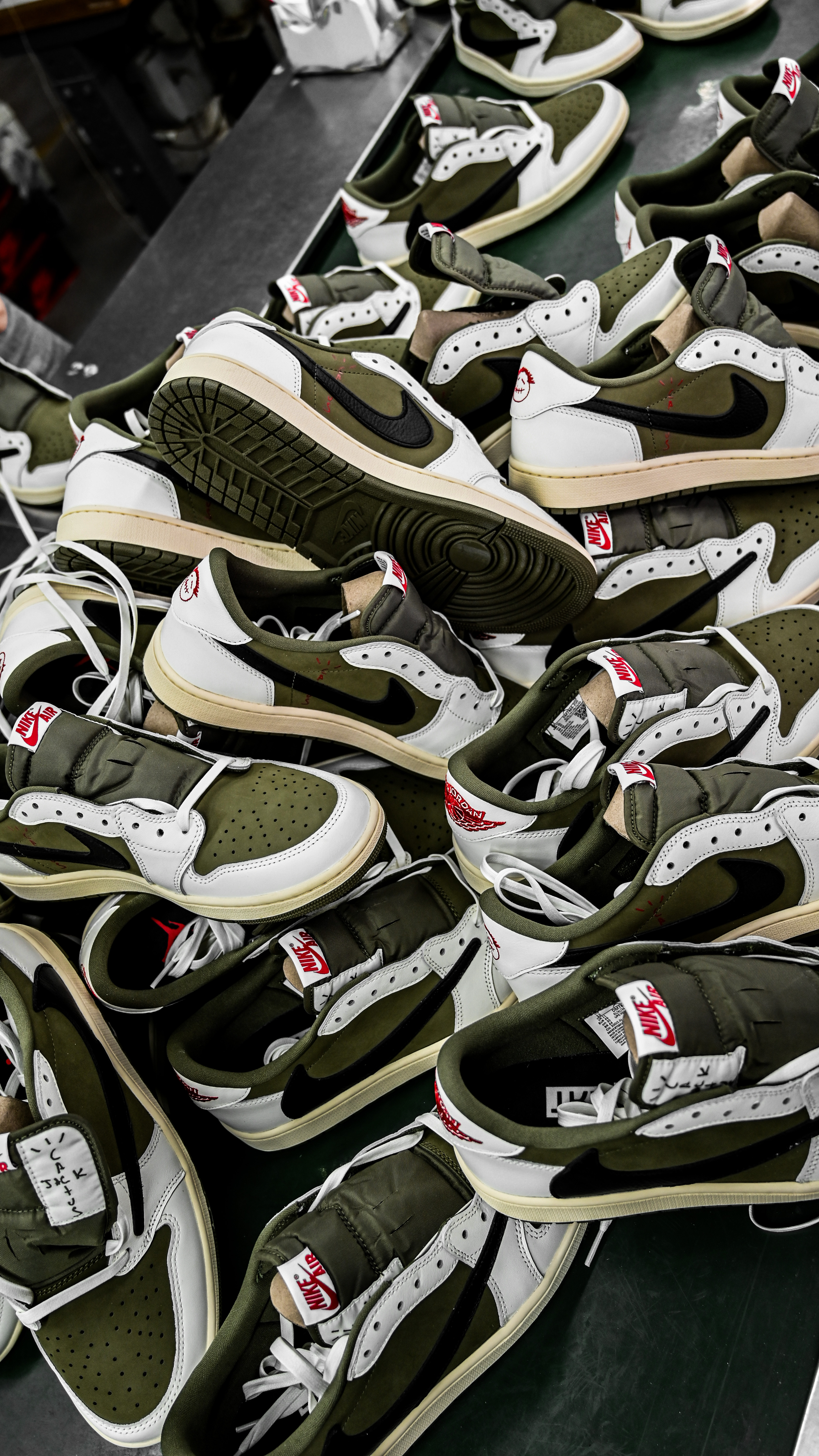 The Travis Scott x Air Jordan 1 Low "Reverse Olive" has already started shipping.