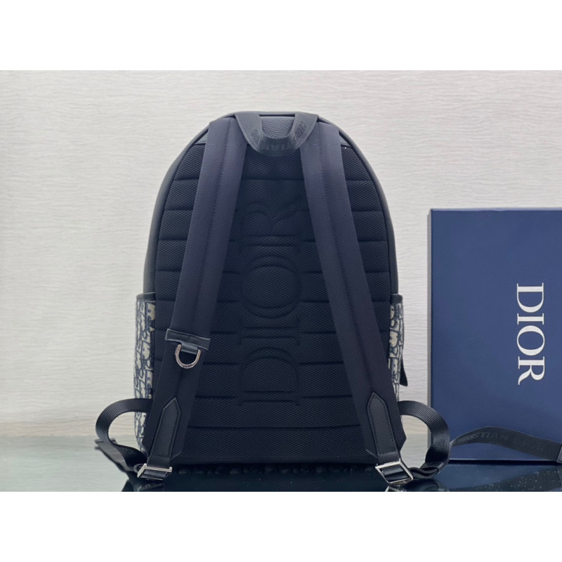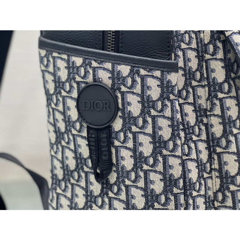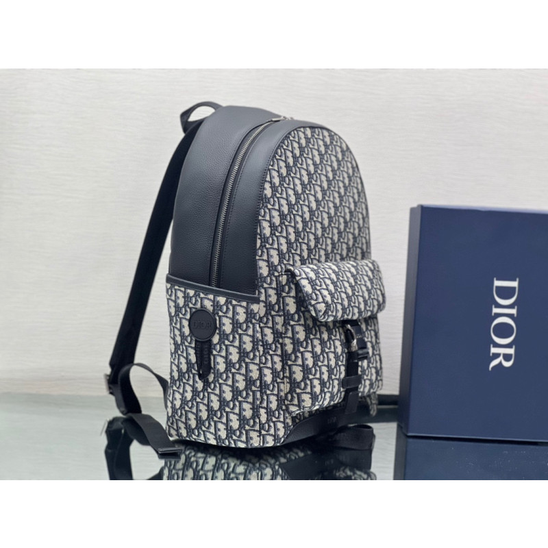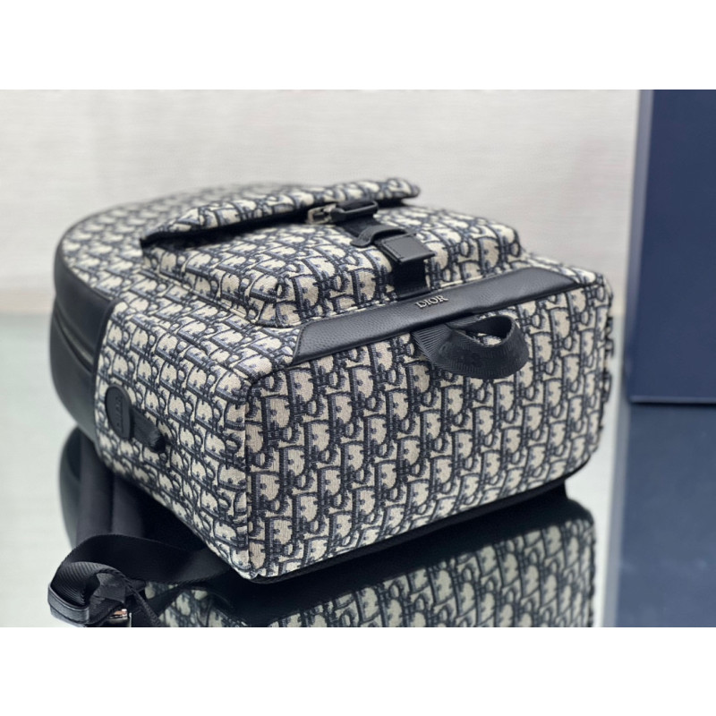Crafted in Dior Oblique jacquard with black grained calfskin details, it's further accentuated by 'DIOR' leather patches on the sides. The roomy main compartment features a padded front flap pocket with aluminum buckle and two side pockets. Complete with padded shoulder straps and a loop for keys or a D-Touch pouch, this backpack will add the finishing touch to any casual look.​