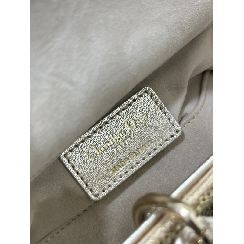 Extra-miniature embroidery beads. Crafted in tonal satin, it's enhanced with ombré-effect beaded embroidery and a D.I.O.R. charm in light gold-finish metal. With a detachable chain shoulder strap and an adjustable, detachable leather shoulder strap, it can be carried by hand, on the shoulder or across the body, making it ideal for everyday or evening looks.