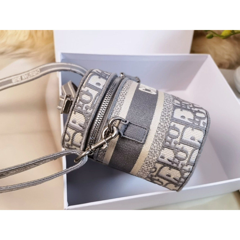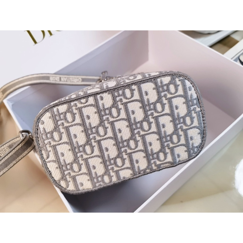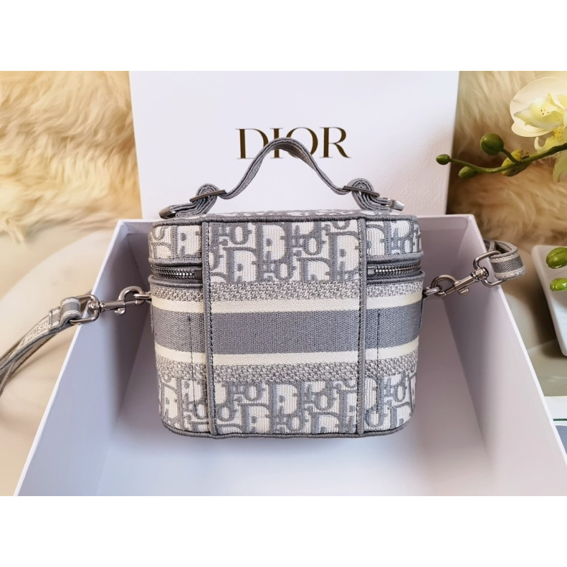DetailCrafted from Oblique jacquard fabric, it's embossed with the CD signature on the top and bottom. The interior is elegant and spacious with a two-way zip. The sturdy leather top handle and adjustable, detachable shoulder strap make this pouch the ideal everyday companion by hand, over the shoulder or across the body.