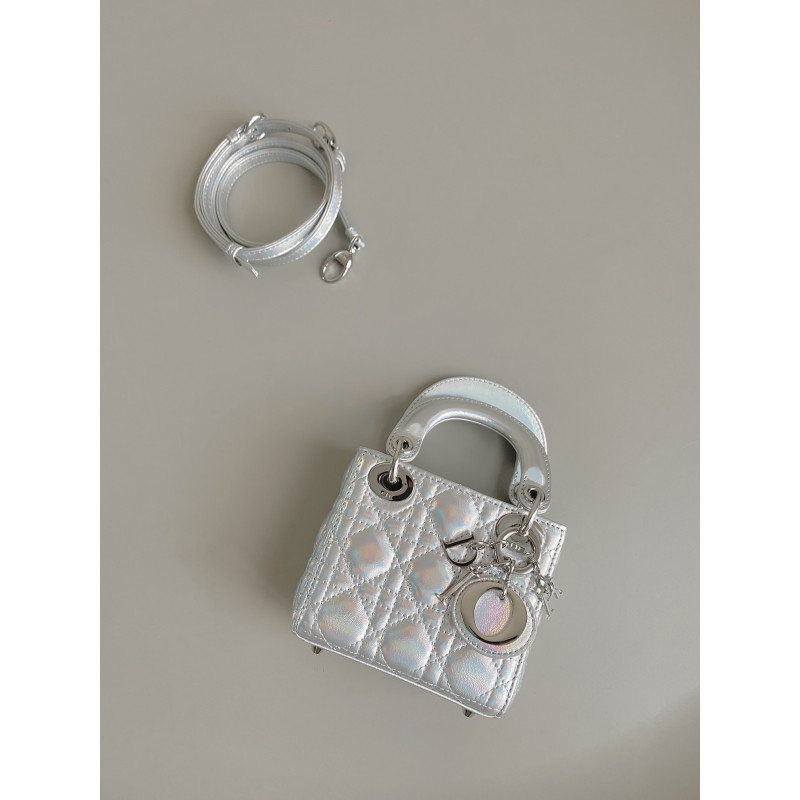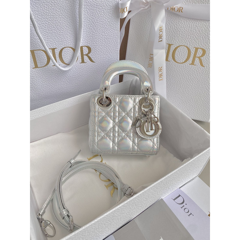 The Lady Dior micro bag embodies a vision of elegance and beauty. Equipped with a handle and adjustable, detachable shoulder strap, 1 interior compartment, can be carried by hand, over the shoulder or crossbody.
