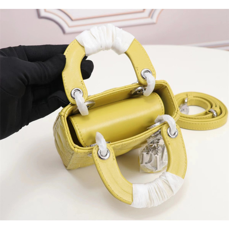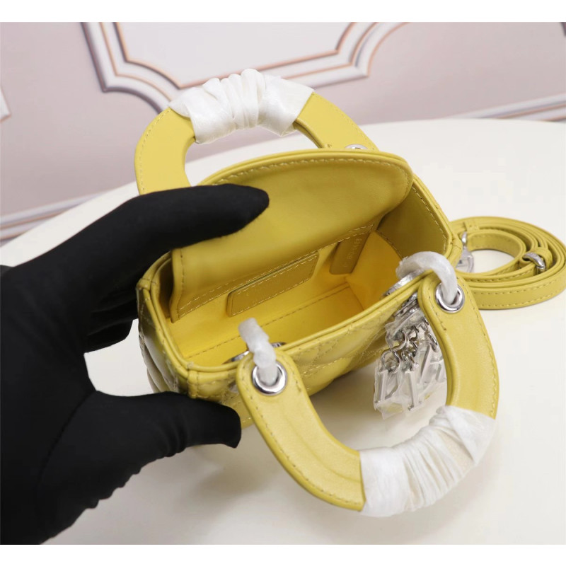 DetailThe Lady Dior micro bag embodies a vision of elegance and beauty. Equipped with a handle and adjustable, detachable shoulder strap, 1 interior compartment, can be carried by hand, over the shoulder or crossbody.
