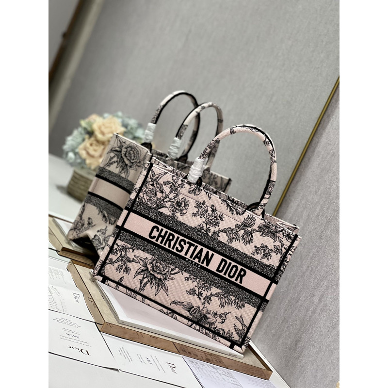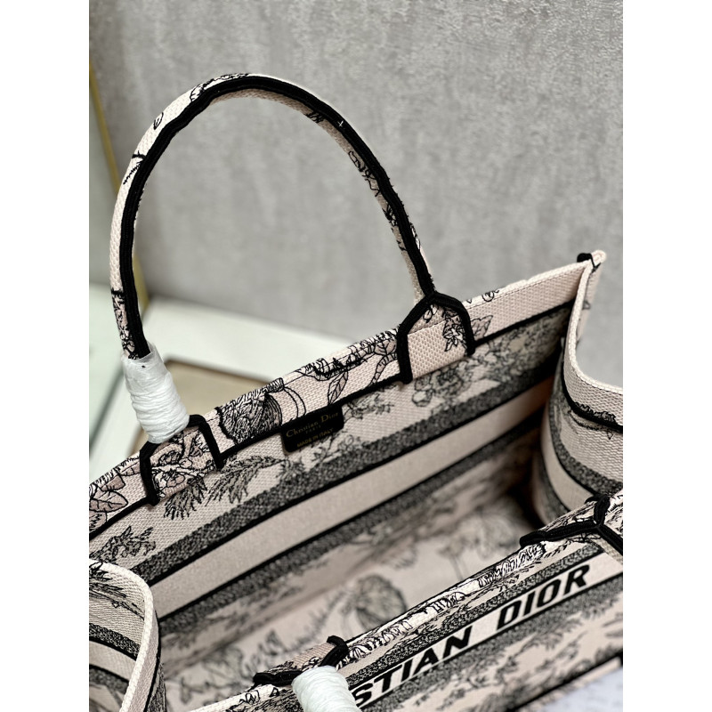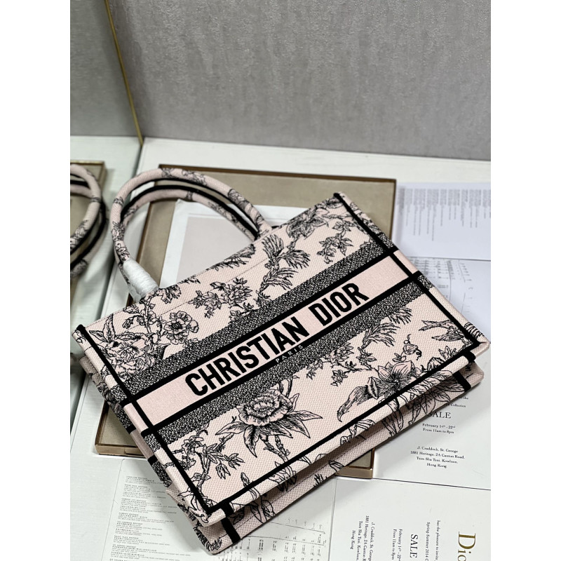 Designed to hold all your daily essentials, it's fully embroidered with the Dior Jardin Botanique motif, showcasing the romantic floral motif of the Granville gardens. The Christian Dior Paris signature adorns the front, reflecting the house's signature craftsmanship.