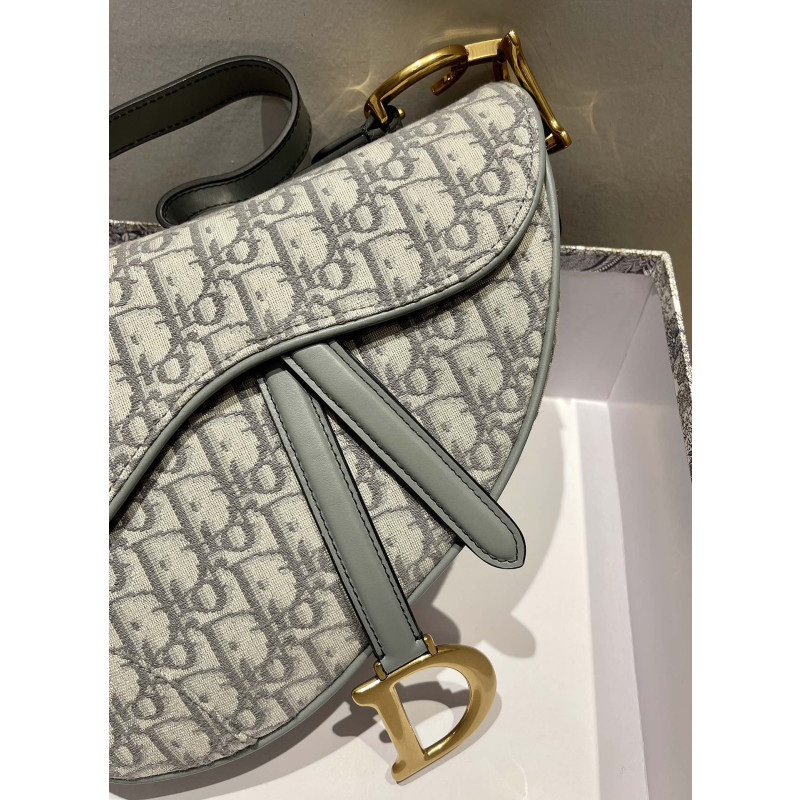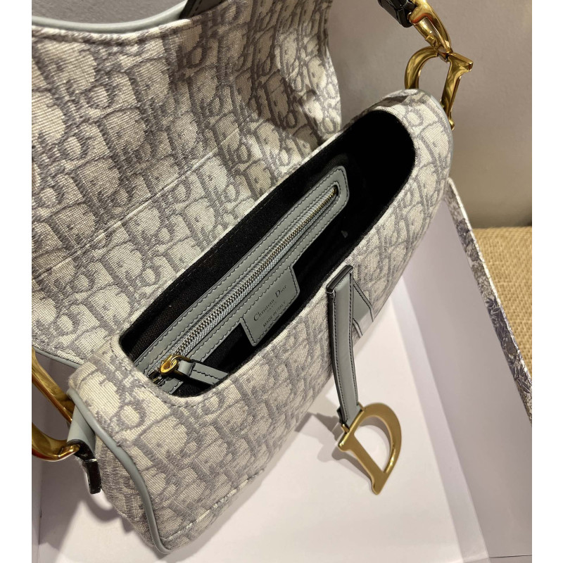 DetailCrafted in Dior Oblique jacquard fabric, it reveals a saddle flap with a magnetic D-shaped stirrup clasp and CD signature in antique gold-finish metal on either side of the shoulder strap. This saddle bag has an adjustable and detachable spaghetti strap and can be carried by hand, over the shoulder or across the body.