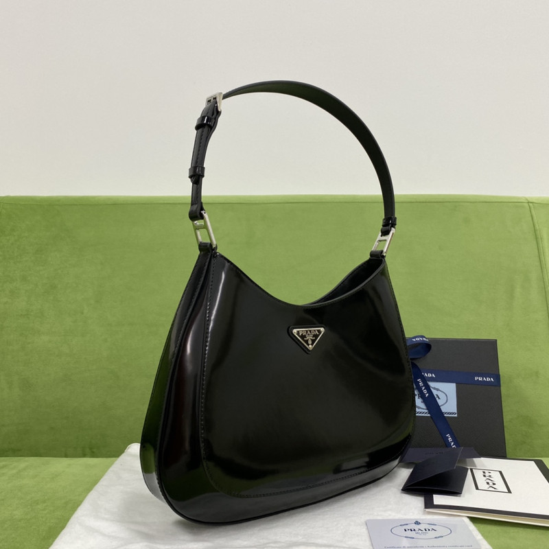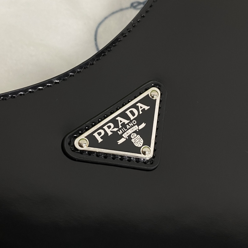 DetailThe special beveled structure of the bottom and sides of this flap bag emphasizes the smooth curved lines and gives it a sophisticated appeal, while the extended handles make it even more functional, allowing it to be worn as a shoulder bag or a tote. Brushed leather, unique to the Prada collection, is a modern, color-changing material perfect for new combinations and contrasts. A triangular enameled logo completes the silhouette.