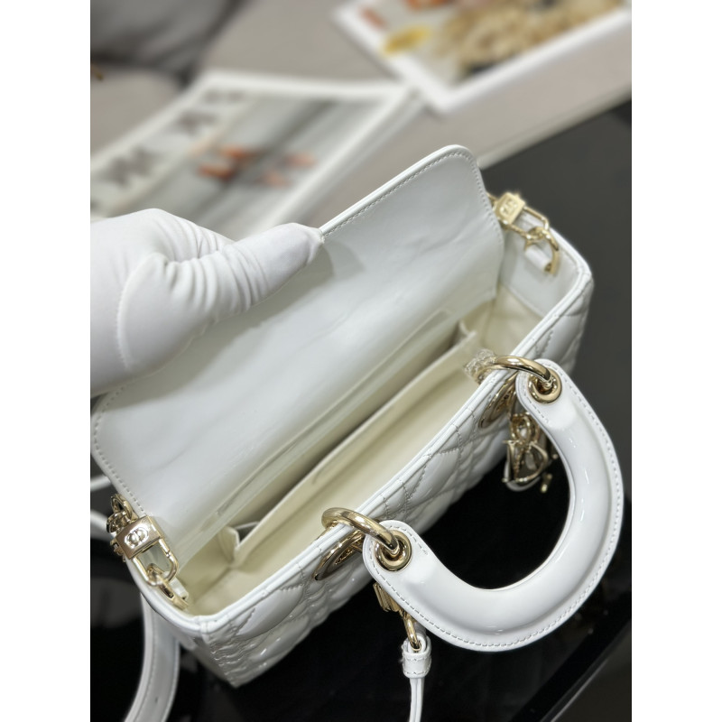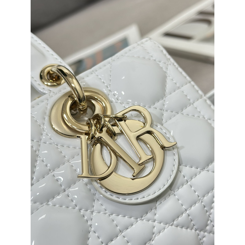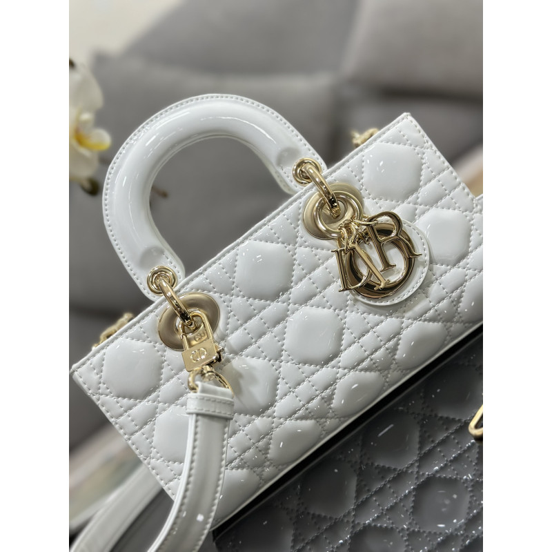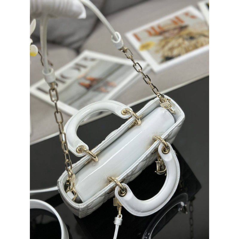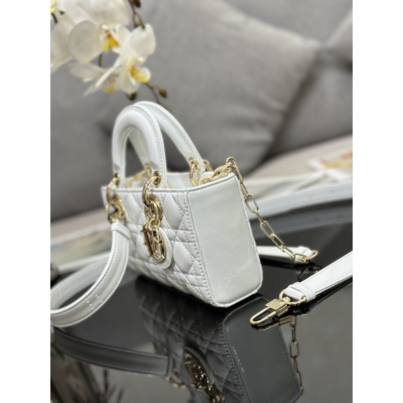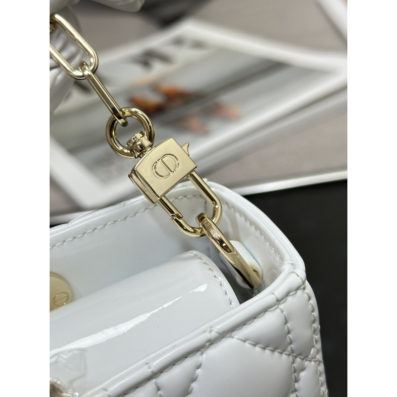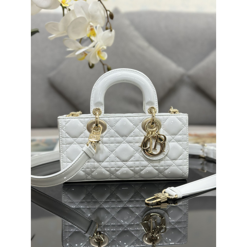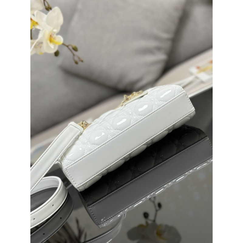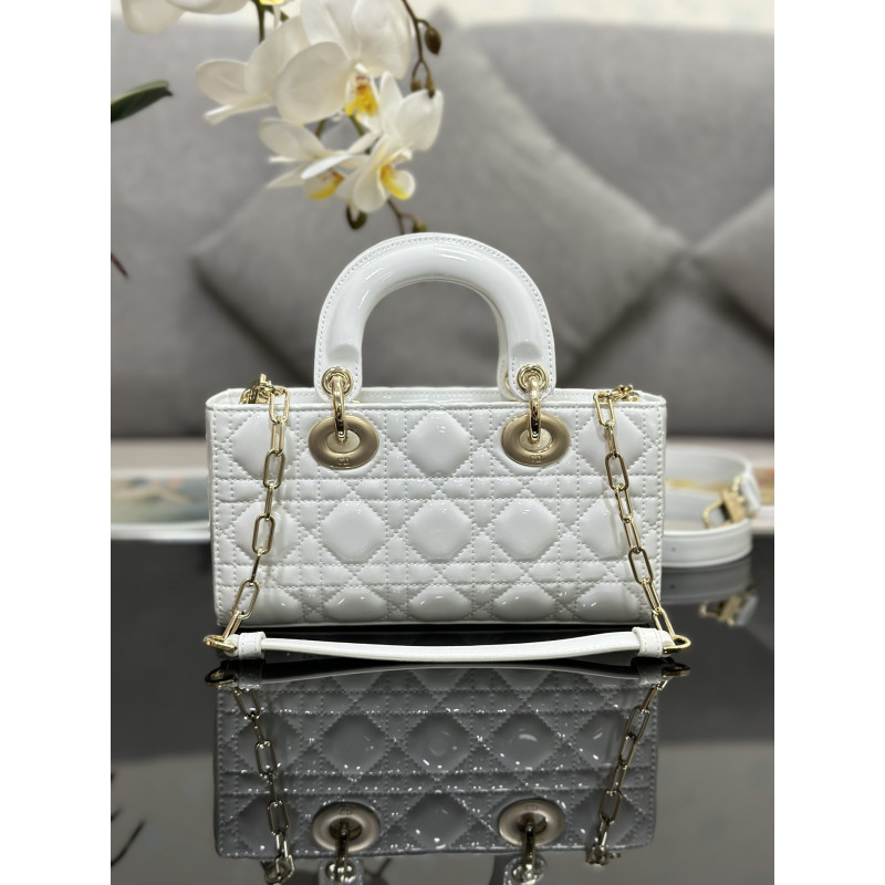With Cannage stitching. Equipped with a detachable chain strap and another adjustable and detachable leather shoulder strap, it can be carried by hand, on the shoulder or across the body as an everyday companion.